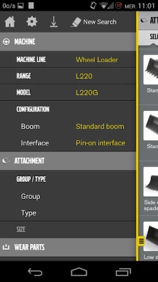 This Attachment Selection Tool for smartphones makes it easier for users to rapidly choose the right attachments for the Volvo Construction Equipment machines. The free download takes the user through the straightforward selection process, with pictures of the machines and attachments along with product specifications and features. There is also an opportunity for extracting these pieces of information and send them out by e-mail.