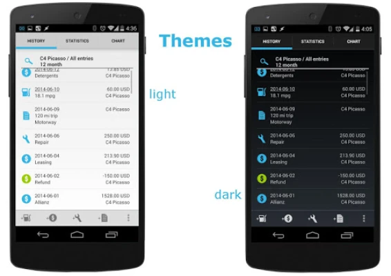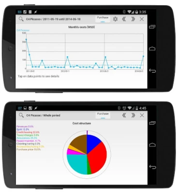 ✔ Easy and flexible recording of refilling, expenses, revenues, repairs and notes