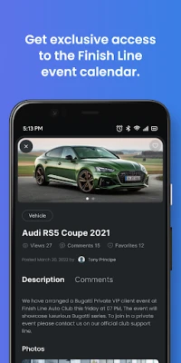 Finish Line owners will have exclusive access to the member events calendar, quarterly newsletters and our blog. We’re also excited to introduce the Finish Line App, giving owners a platform to showcase their classified vehicle and collectable listings, private garage images and collection management, calendar of events and much more. Owners can opt-in for notifications on the latest news and happenings, as well as updated classifieds.