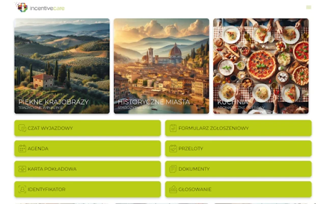 Aplikacja dla uczestników wydarzeń organizowanych przez Incentive Care. Znajdziesz tutaj wszystkie niezbędne informacje o wyjeździe, w którym bierzesz udział - dokładny program, informacje o hotelach, odwiedzanych miejscach i wiele innych praktycznych informacji.