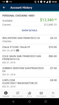 • View monthly checking account rewards progress, manage and redeem reward points, and enable purchase rewards with participating retailers