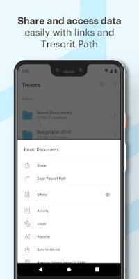 • Create shared folders (tresors) with your friends or colleagues, access their contents securely on any Android device