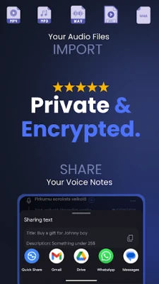 Already have audio or video files? Import them directly and convert to text. All transcriptions stay encrypted on-device, eliminating cloud risks.